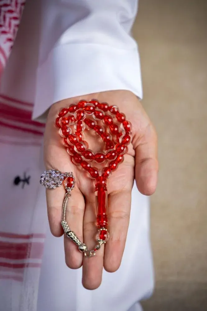 سبحة بكلايت شفاف خيط احمر
